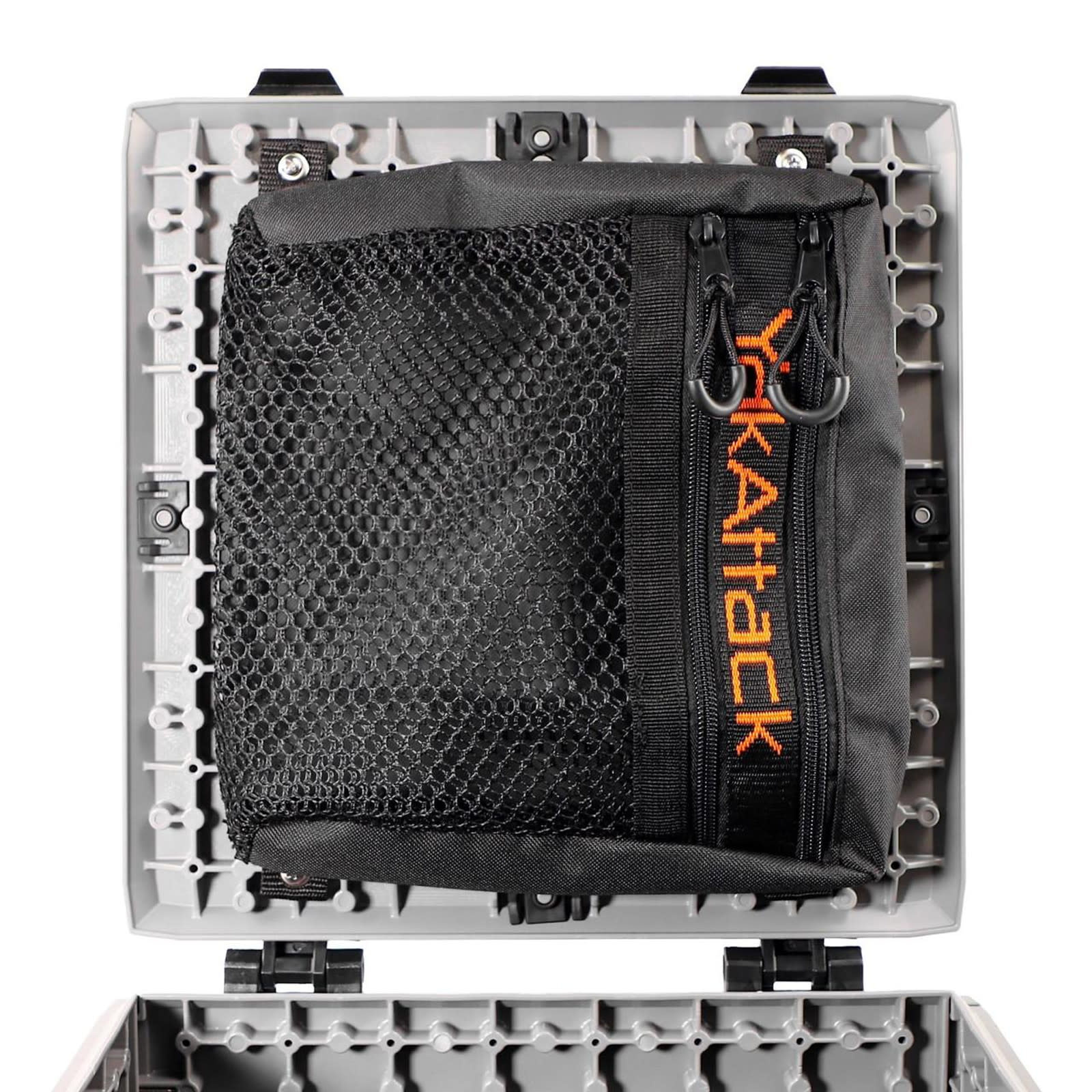 The mesh design not only helps in quick identification of contents but also ensures water drainage, keeping your gear dry and accessible. Whether mounted inside or outside your crate, this storage bag makes accessing your gear a breeze.