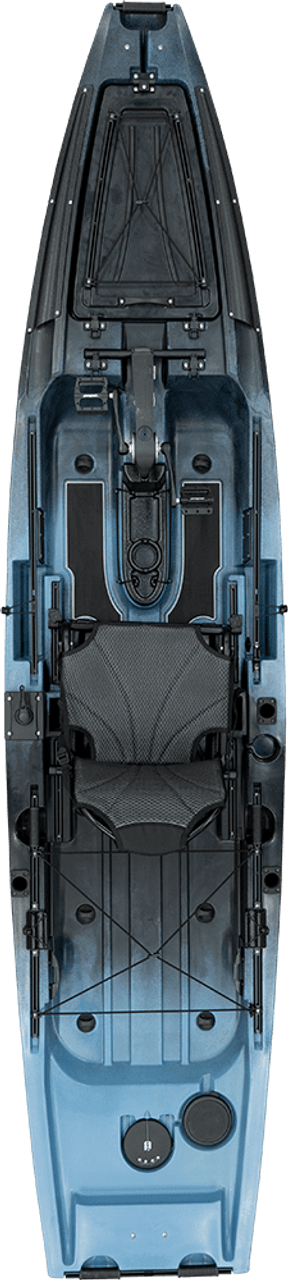 Featuring the proven Propel Pedal Drive and impressive kayak fishing features that will take your experience on the water to the next level. The Max 12.5 specializes in freshwater and saltwater environments, making it an incredibly versatile kayak fishing platform. Key features include: The bow hatch area with a small bucket, a location for battery placement and easy transducer wiring through the integrated hull scupper. Built in transducer mounting plate on the hull so you do not have to drill into your kayak to mount your transducer. An electronic switch mounting plate that is replaceable if you want to change your setup without drilling into your boat. Bow and Stern inserts built in for easy mounting of a Power-Pole Micro Anchor or a motor. Ample storage and groove tracks for accessories.