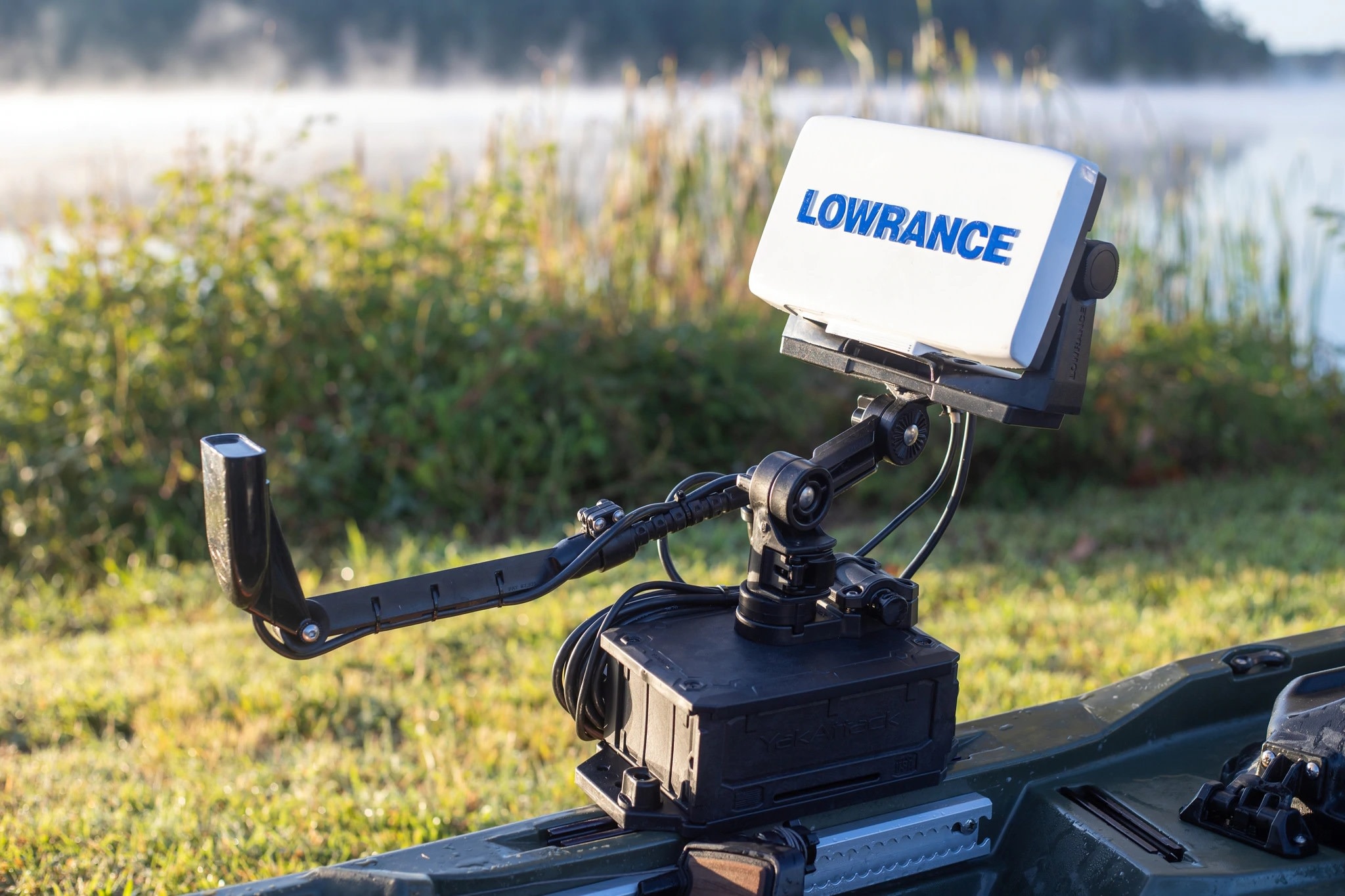 - GearTrac, fish finder mount, transducer arm, and display not included.