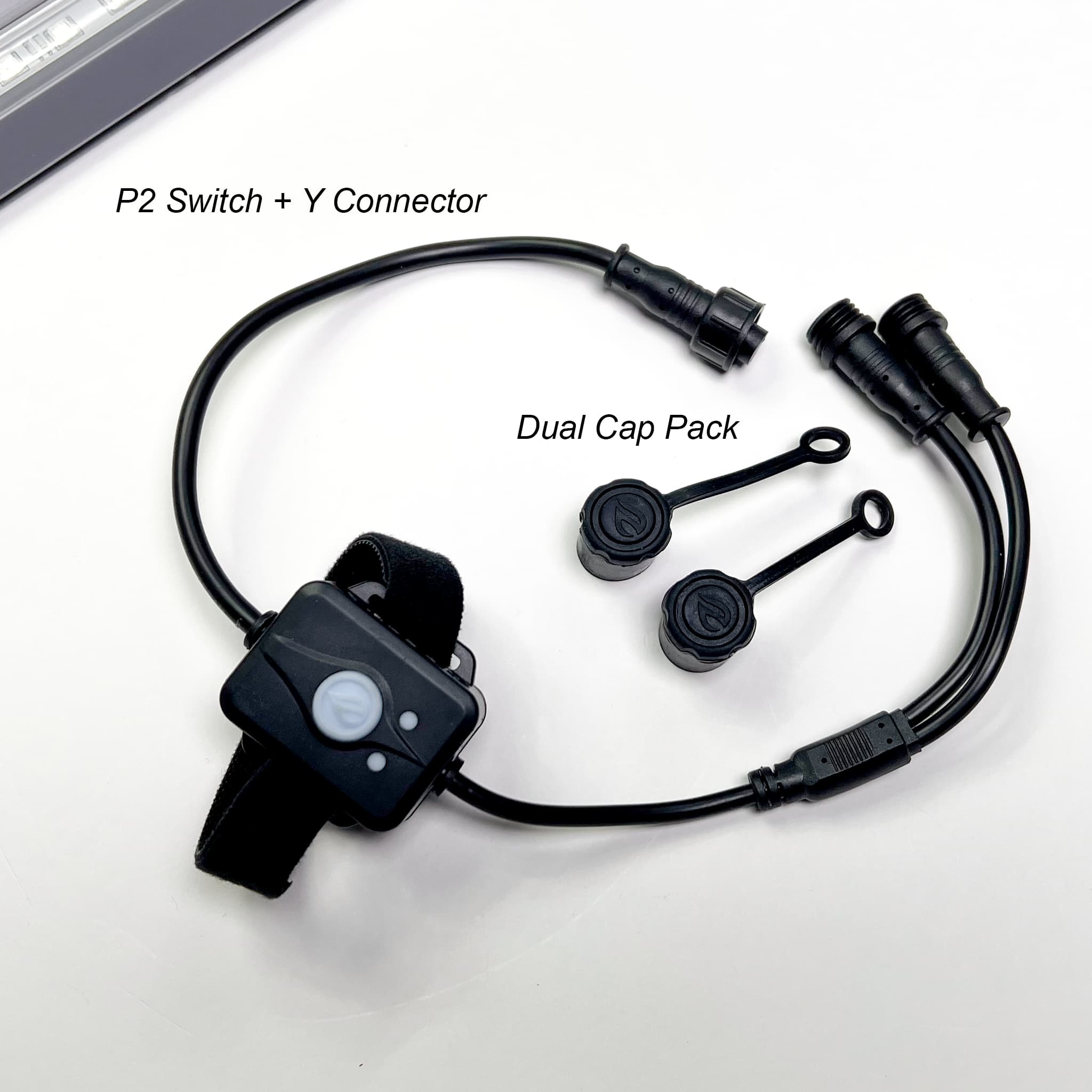 Our latest V3 LED technology is inside the light bar and with the simple press of our Spectrum P2 Switch + Y Connector you can cycle through seven colors modes (Red, Blue, Green, Orange, Purple, Teal and White). There are also three color changing light modes (slow color change, fast color change – a.k.a “Party Mode”, and if you press and hold the button down for three seconds, there is SOS Strobe). The light bar and switch are completely waterproof, and purchase includes our Dual Cap Pack to help protect the connectors, Nocqua branded wire sleeves with sticky clips for cord management, and the necessary hardware for track mounting to any traditional gear track.