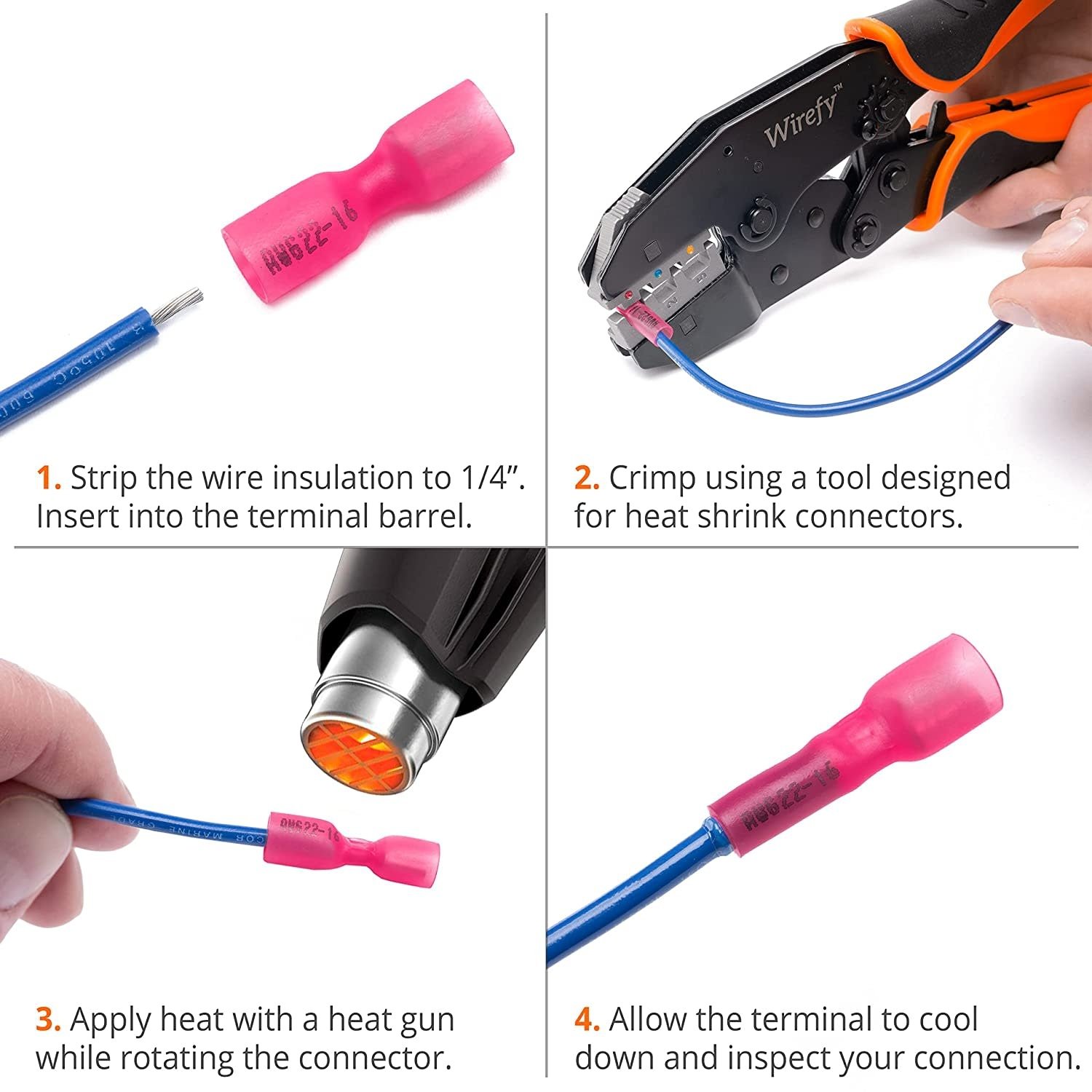 - STRONG CRIMPS - Double barrels designed to ensure stronger crimps. Heat shrink tubing adhesive glues to the wire insulation for enhanced tensile strength. Your wire will not slip out.