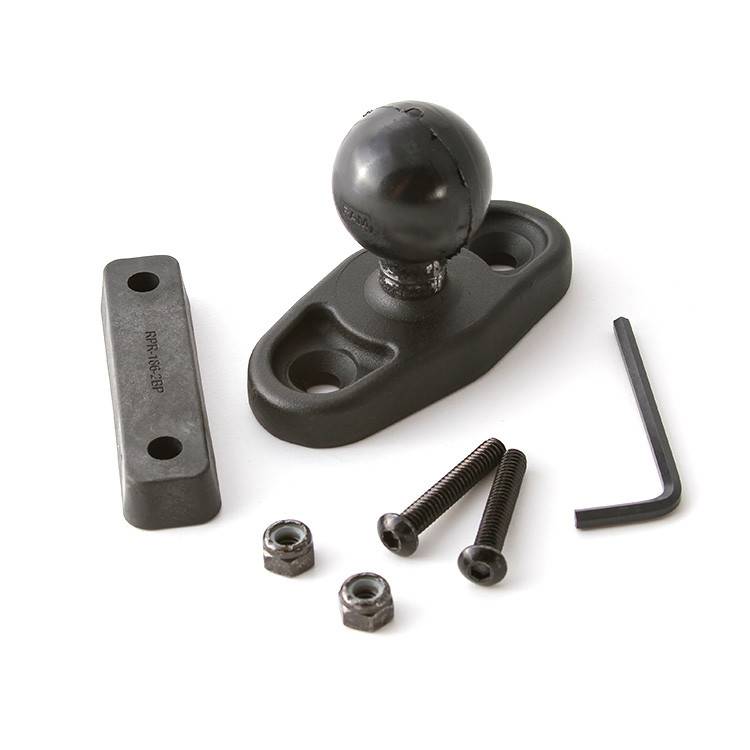 The Space Saver base fits in narrow spaces that other mounts might not fit. Features a 1.5 inch diameter ball, and includes backing plate, 1-inch long socket-head screws, nylock nuts and allen wrench.