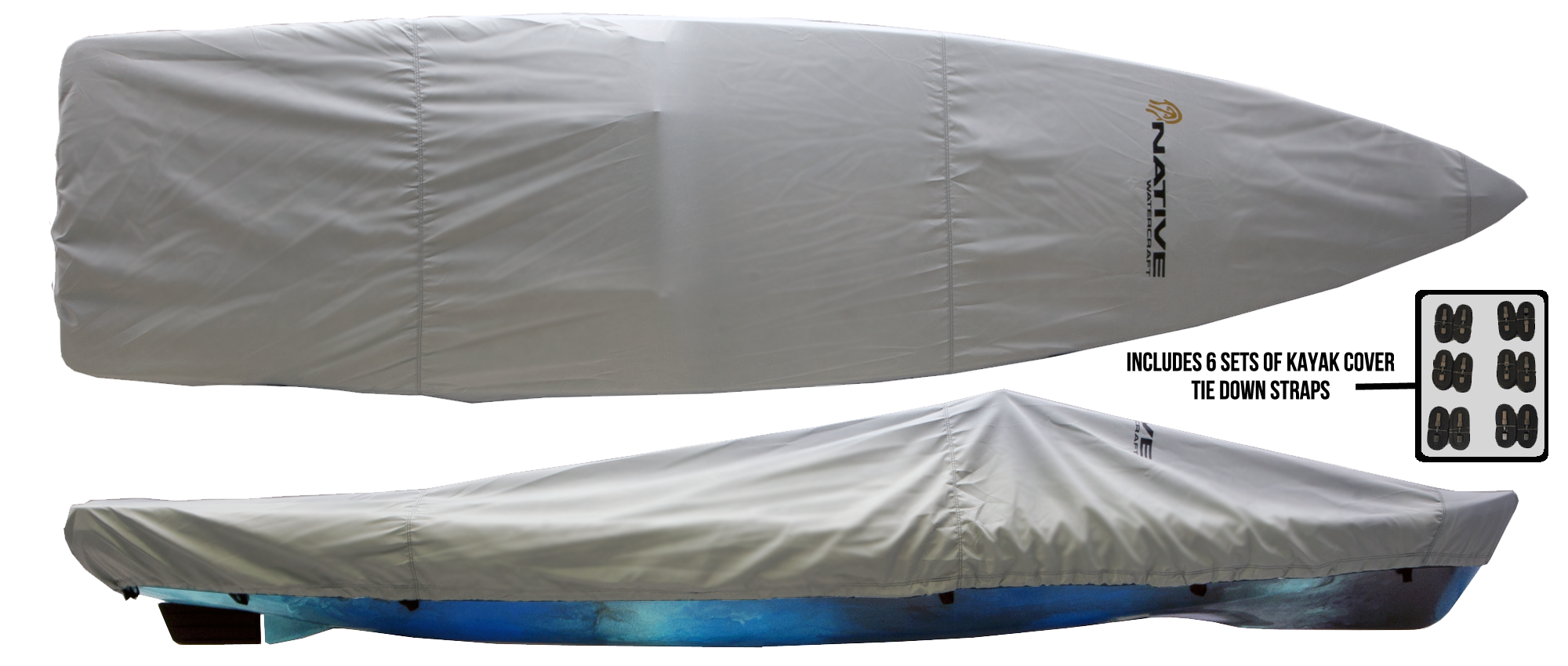 Native Watercraft kayak covers are custom made to fit our kayaks just right. Each cover includes a full set of cover tie down straps (one for each loop set) that can be used to secure the cover when traveling through the sewn in loops on the cover. All covers are made in USA and created with marine-grade anti-wick thread that includes double-stitched construction and 4-ply join seams.