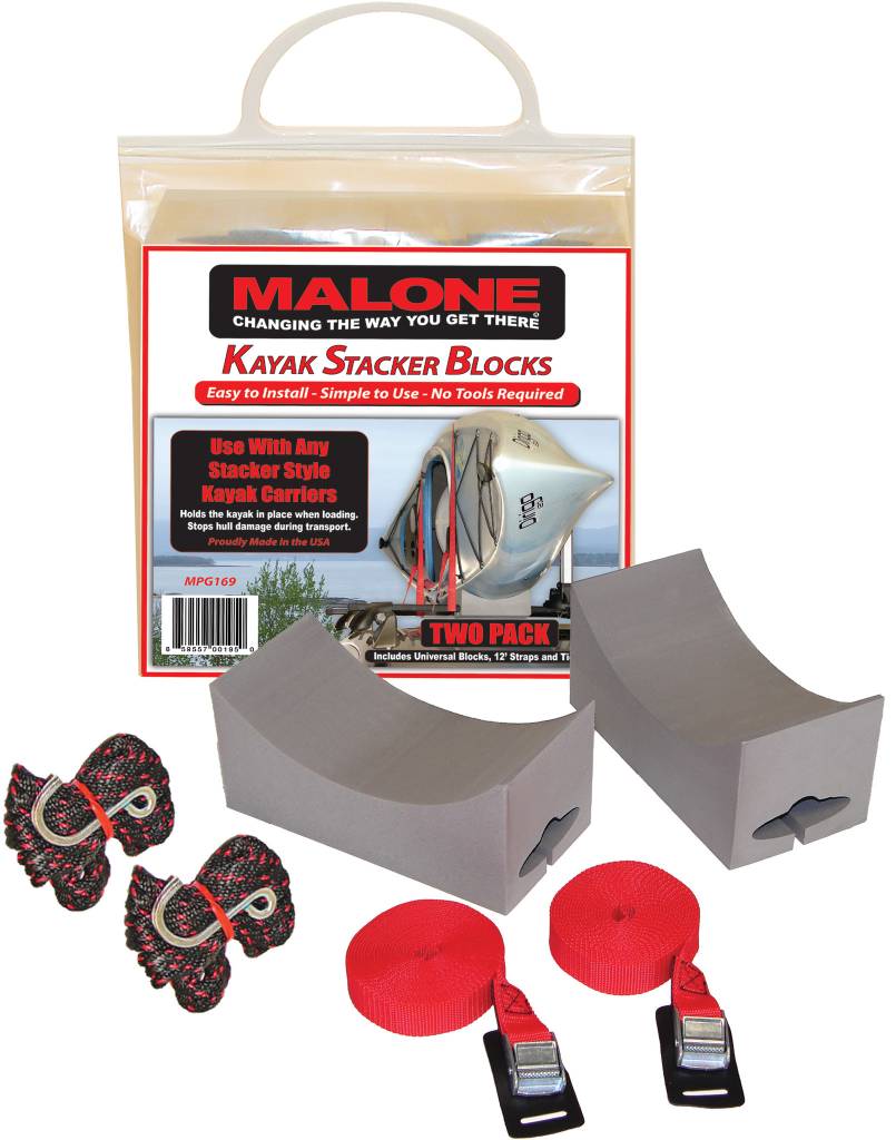 The MPG169 Stacker Kit can be added to any stacker style carrier system to hold the kayak in place during loading and cushion the kayak during transport. A great way to protect the boat finish and avoid abrasions from the load bars. Fits round, square or factory oval load bars.