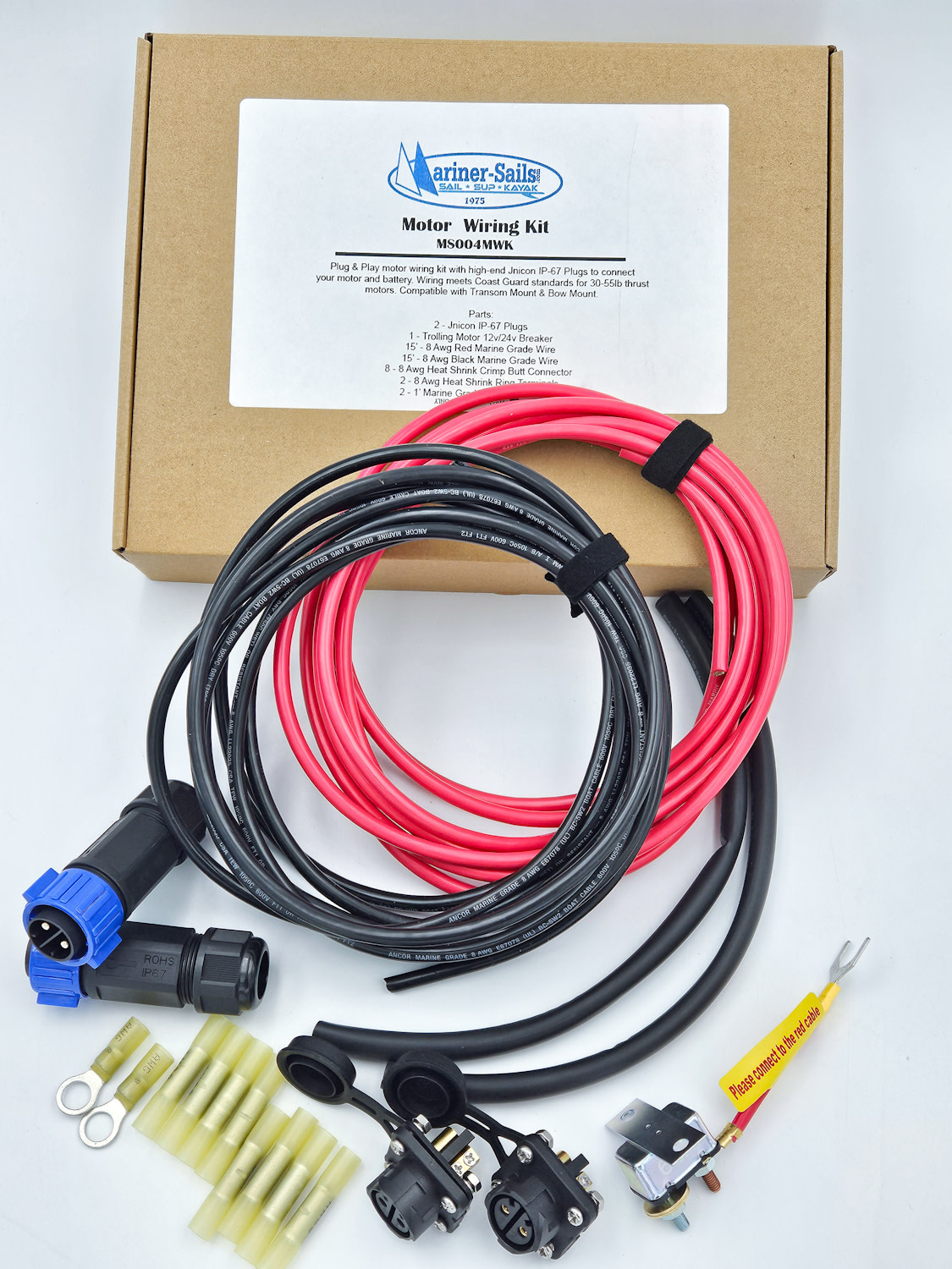 Plug and Play motor with high-end Jnicon IP-67 Plugs to connect your motor and battery. Wiring meets Coat Guard standards for 30-55 LB. thrust motors. Compatible with Transom Mount & Bow Mount.