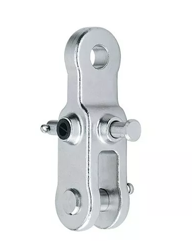 Harken® toggle assembly accepts standard turnbuckle using swage, rod, Norseman®, or Sta-Lok® terminals. Toggle flips for fork or tang chainplate installation. A single stainless steel clevis pin provides access to the turnbuckle for adjustment. Sta-Lok® is a registered trademark of Sta-Lok Terminals, Ltd.