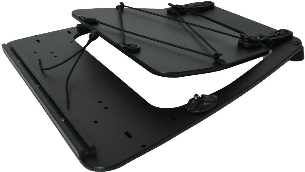 The Flint Console fits in the front of the deck floor and provides awesome storage for tackle and small gear you want within arm’s reach. 2 3700 series Plano Stowaway boxes fit on the lid under the bungees.