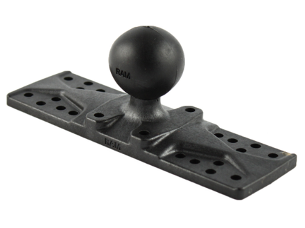 The RAM-111BU consists of a 1.5" diameter rubber ball connected at right angles to a flat 6.25 x 2" rectangular plate. The plate contains different combinations of pre-drilled holes which will match up to many electronic devices and mounts, including Marine GPS, CB Radios, Ham Radios, Gimbal Brackets and more.