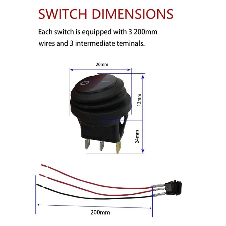 • Function: Waterproof 12 volt marine rocker switch has 3 pins (easy to turn ON/OFF), and SPST (single pole single throw) design with a set of jumpers. The rating is 20A 12VDC.