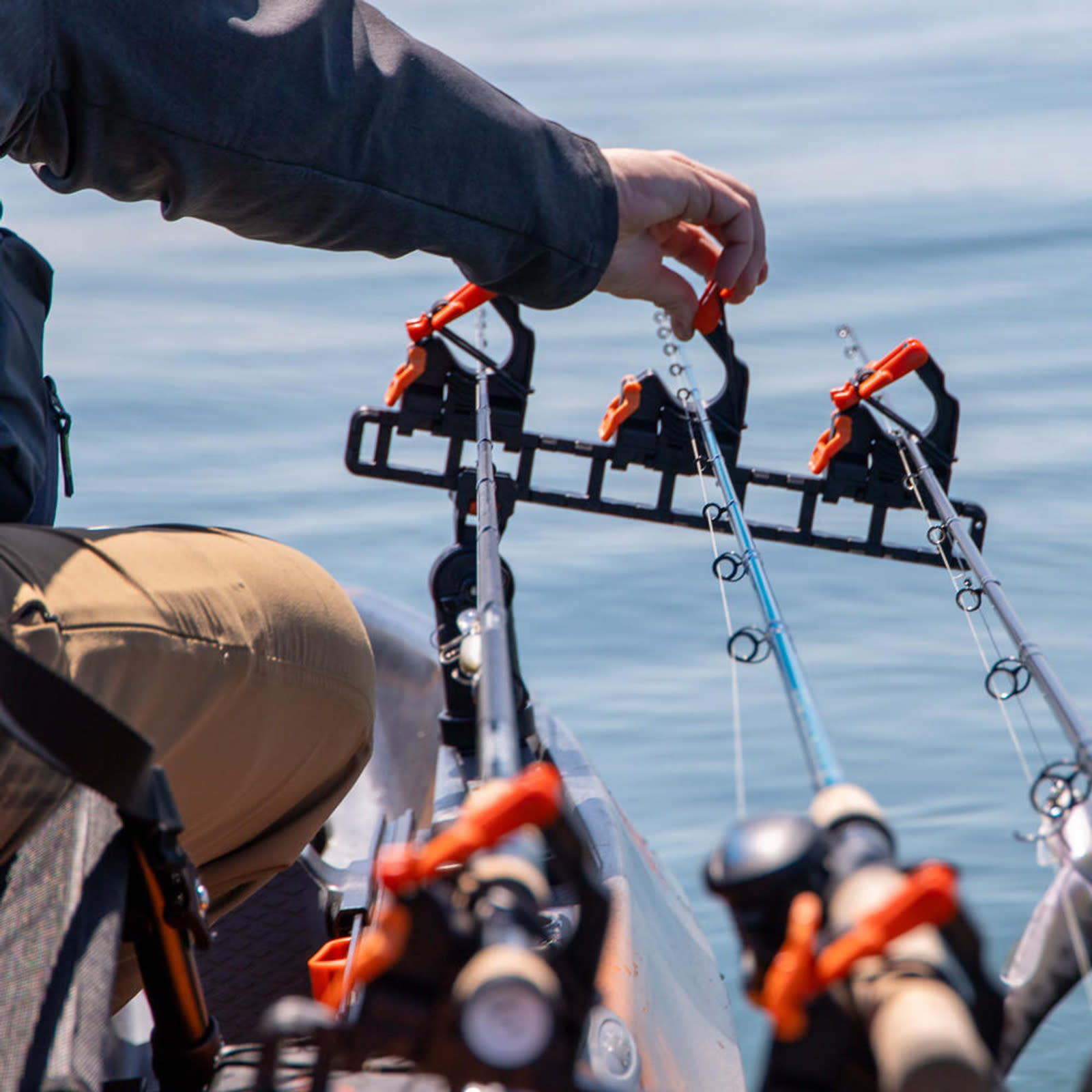 New to the YakAttack arsenal for 2024 is the SideStage Pro. The SideStage Pro is our take on a horizontal rod stager, but with all of the innovation and adjustability you would expect from YakAttack. This system is sold as a pair and comes with everything you need to stage and secure up to three rods. It introduces an all-new attachment system called ClickTrac. The ClickTrac Rail System allows you to easily attach, adjust and remove your accessories with the push of a button. For those who use a bow-mounted motor or pedal drive on their kayak off the side horizontal rod stagers like the SideStage could be a nice option to get three rods within reach and easy to access.