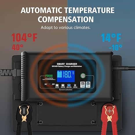 - 36V Voltage Setting: Choose between 36V options with high charging currents up to 18A for 36V to quickly and efficiently charge your batteries.