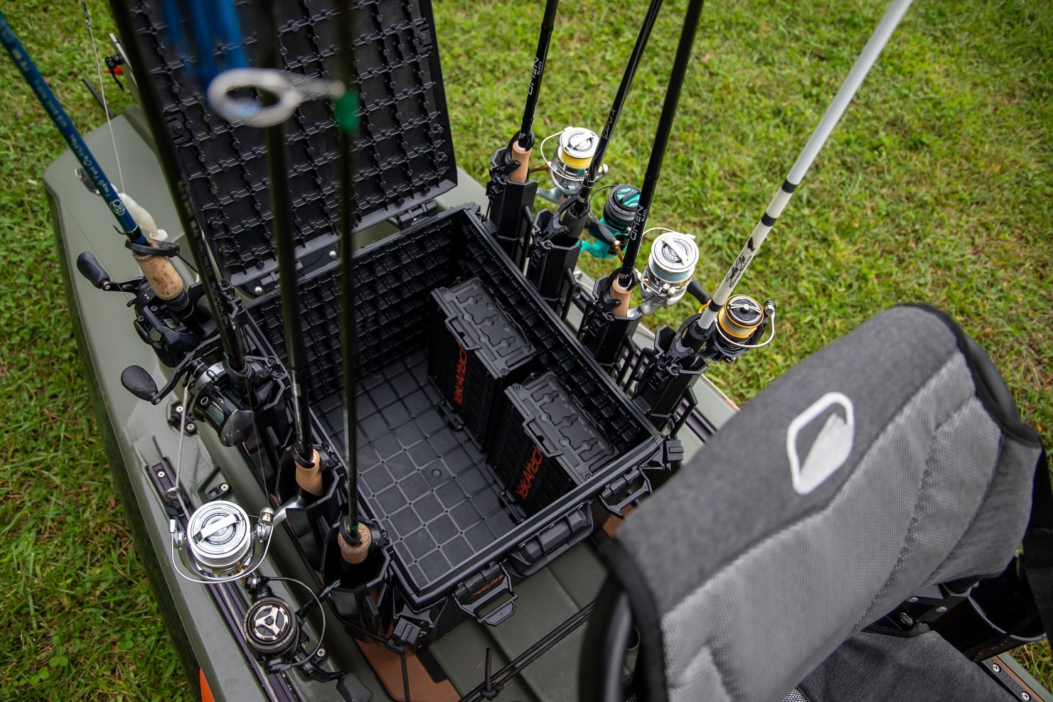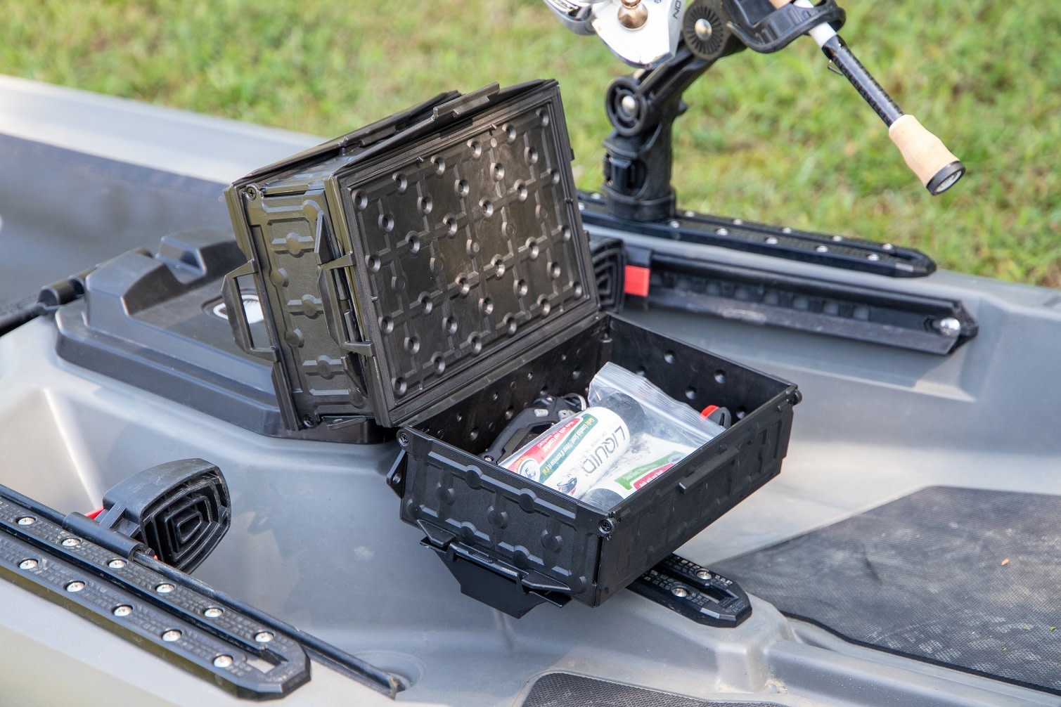 The stackable storage boxes quickly and securely snap onto the base and on top of each other. When two boxes are stacked on top of each other, you have the ability to not only access the top box, but you can access the bottom box. With interior dimensions measuring 8.375” x 5.375” x 2.375”, there are many ways to utilize this secure quick access storage box. From tools to terminal tackle, the TracPack is a unique and handy storage solution for both recreational and kayak anglers. Sold as a two-pack of storage boxes and includes the quick release base. The TracPak is not waterproof or water-tight and does not float, so each storage box features an eyelet if you choose to use a leash for added security.