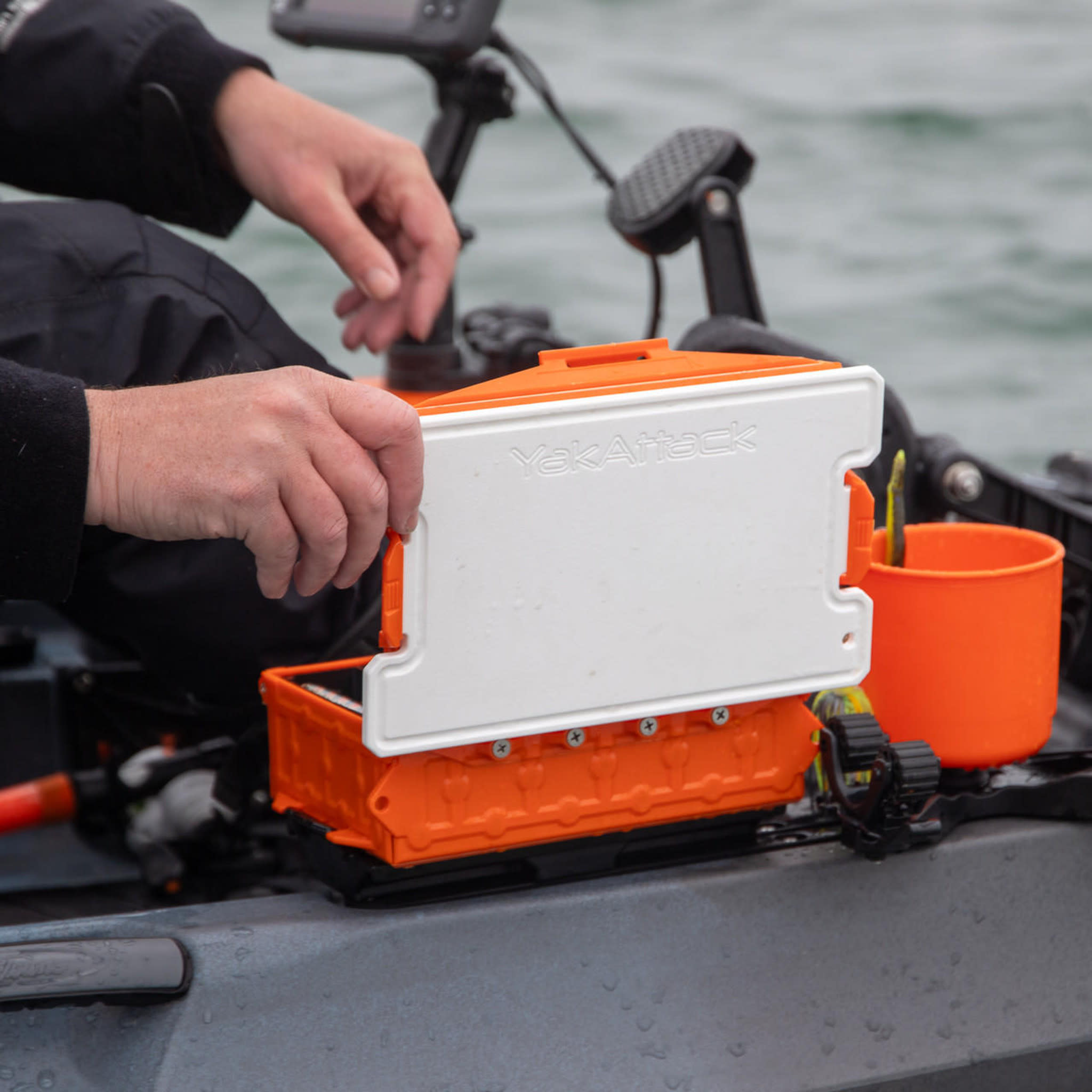The introduction of the TracPak changed the category of kayak track storage and organization. Having the modular ability to mount a storage box for go-to items easily within reach makes them an essential accessory for many kayak anglers. Now, the TracPak Cutting Board Attachment gives you a hard working surface that you can use right in front of you or anywhere you have your TracPak mounted. The TracPak Cutting Board is made from food safe HDPE and works great as a bait cutting surface or even lunch. The cutting boards design allows you to easily attach and remove it utilizing the stacking tabs found on the lid of any TracPak.